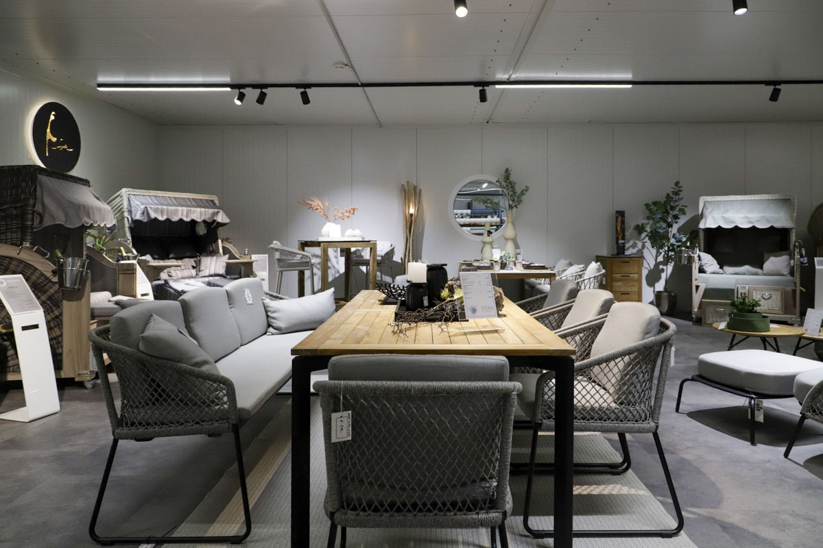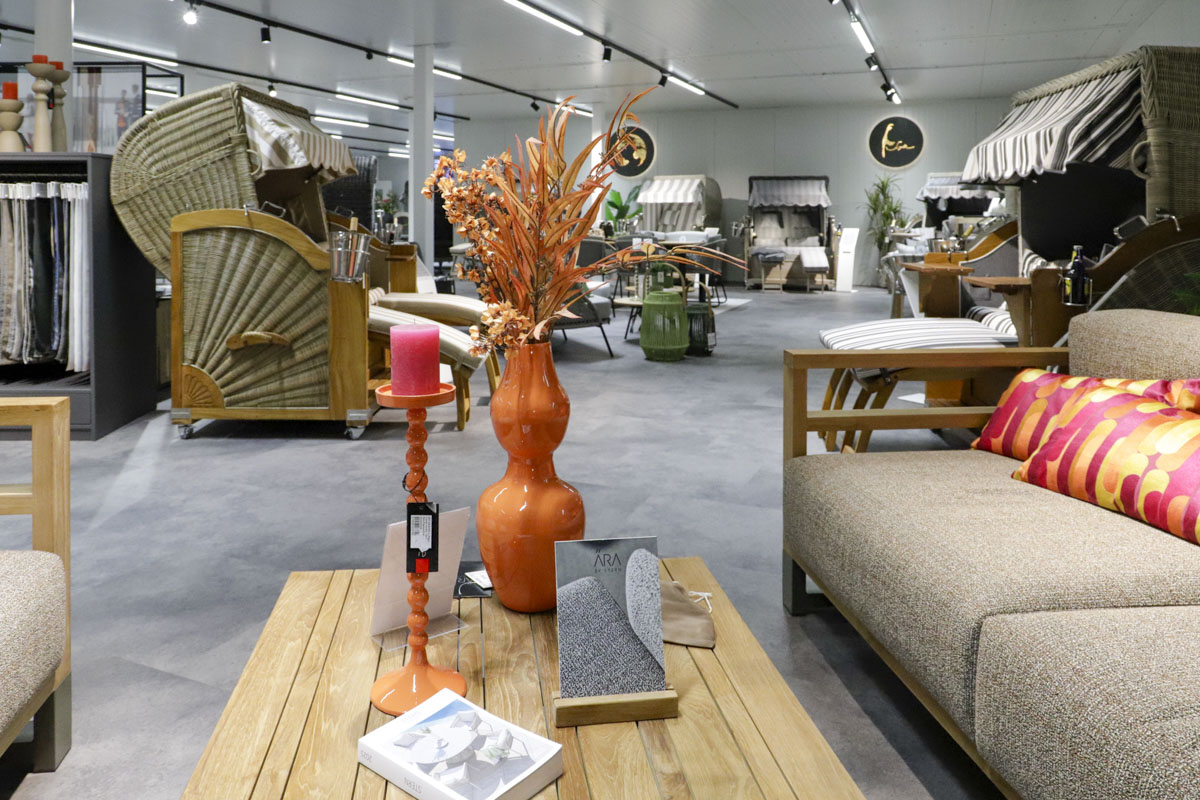 Freuen Sie sich auf eine Ausstellung, die Ihren Außenbereich ganzheitlich neu denkt. In unserem neuen Showroom erleben Sie auf rund 1.000 m² stilvolle Outdoor-Wohnwelten, in denen Strandkörbe, Gartenmöbel, Sonnenschirme und hochwertige Deko perfekt aufeinander abgestimmt präsentiert werden.