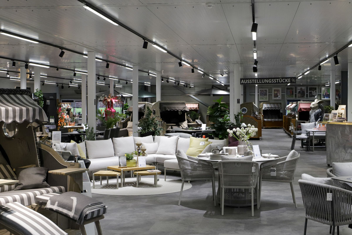 In unserer neuen, großzügigen Gartenmöbel-Ausstellung wird aus einer Idee Ihr ganz persönlicher Outdoor-Traum. Auf rund 1.000 m² liebevoll gestalteter Ausstellungsfläche zeigen wir Ihnen, wie Strandkorb, Gartenmöbel, Sonnenschirm und stilvolle Deko zu einer harmonischen Wohlfühloase verschmelzen.