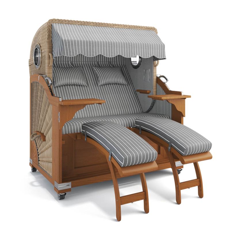 ABVERKAUF Strandkorb Kampen Teak mit Bullaugen, Hannover grau