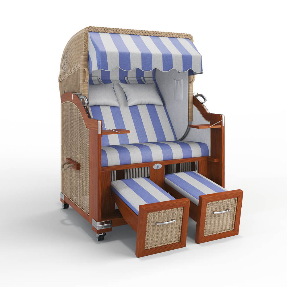 ausziehbare Fußablagen: Die ausziehbaren Fußablagen vom Hörnum sind besonders praktisch, da sie ohne Montage schnell einsatzbereit sind. Ihr klassisches Design fügt sich harmonisch in die Optik des Strandkorbs ein und erinnert an traditionelle Strandkorbmodelle.