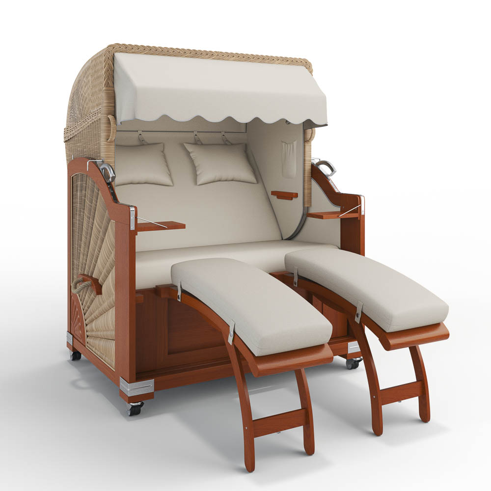 Wir fertigen unsere Strandkörbe in aufwendiger Handarbeit aus massiven Edelhölzern aus zertifiziertem Anbau, hochwertigen Dralon-Stoffen, robustem PE-Geflecht und langlebigen Edelstahlbeschlägen. Diese Qualität liegt uns am Herzen, weshalb wir auf unsere Strandkörbe eine 5-jährige Garantie gewähren.