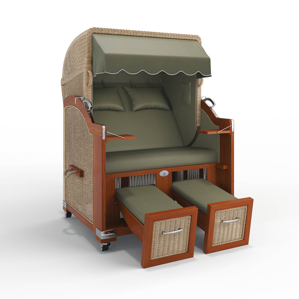 Unser Strandkorb Kampen ist in drei hochwertigen Holzvarianten erhältlich: Mahagoni, Teak und Teak Vintage. Alle Hölzer stammen aus zertifiziertem, nachhaltigem Anbau und bieten höchste Qualität.