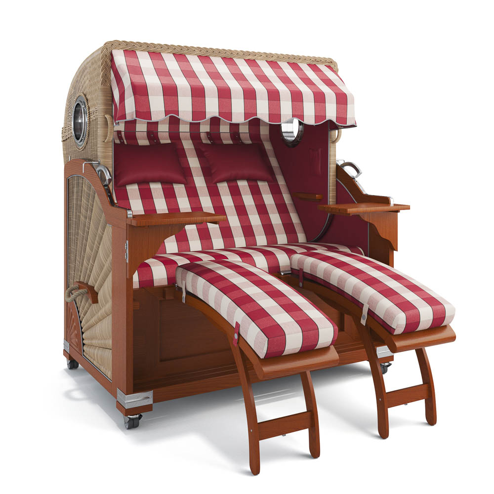 Der Strandkorb Keitum wird in drei exklusiven Holzvarianten angeboten: Mahagoni, Teak und Teak Vintage. Alle Hölzer stammen aus zertifiziertem, nachhaltigem Anbau und stehen für höchste Qualität.