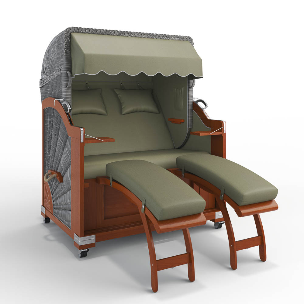Unsere Strandkörbe werden in Buxtehude mit größter Sorgfalt und Präzision aus zertifizierten Edelhölzern, robustem PE-Geflecht, langlebigen Edelstahlbeschlägen und hochwertigen Dralon-Stoffen gefertigt. Dank dieser hochwertigen Materialien und sorgfältigen Verarbeitung gewähren wir 5 Jahre Garantie. Jeder Strandkorb ist stilvoll, funktional und ein langlebiger Begleiter – ein Qualitätsprodukt, das bei guter Pflege ein Leben lang Freude bereitet.