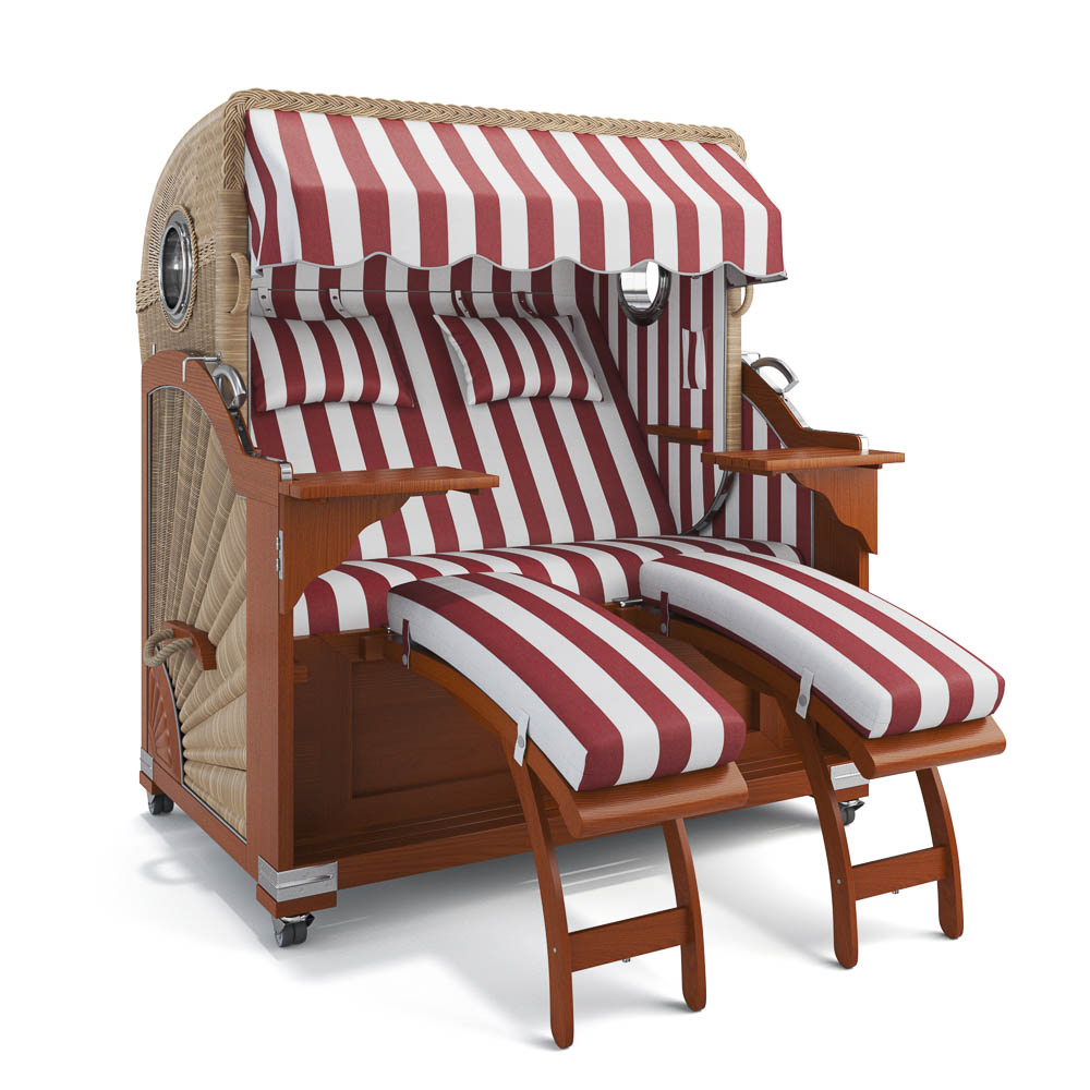 Der Strandkorb Keitum wird in drei exklusiven Holzvarianten angeboten: Mahagoni, Teak und Teak Vintage. Alle Hölzer stammen aus zertifiziertem, nachhaltigem Anbau und stehen für höchste Qualität.