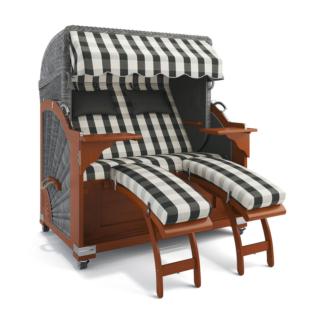 Der Strandkorb Keitum wird in drei exklusiven Holzvarianten angeboten: Mahagoni, Teak und Teak Vintage. Alle Hölzer stammen aus zertifiziertem, nachhaltigem Anbau und stehen für höchste Qualität.