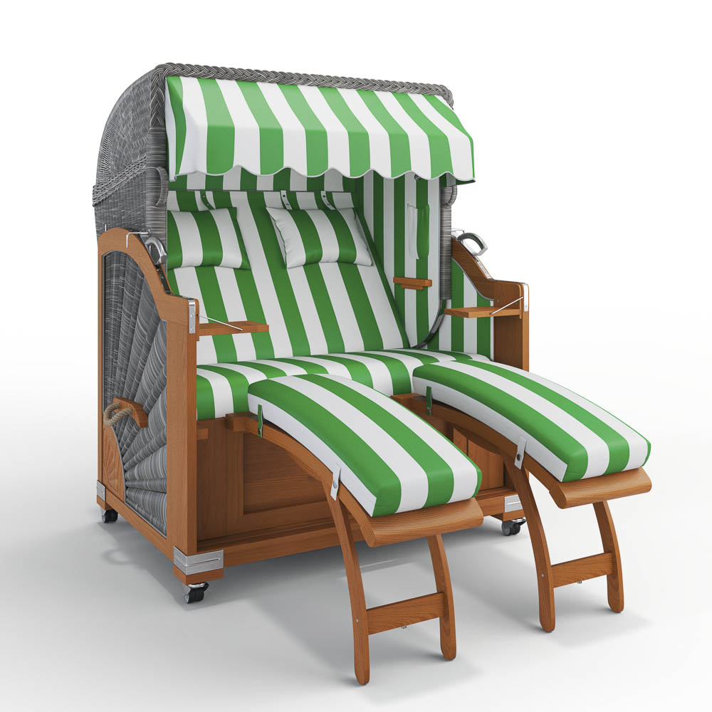 Der Strandkorb Keitum wird in drei exklusiven Holzvarianten angeboten: Mahagoni, Teak und Teak Vintage. Alle Hölzer stammen aus zertifiziertem, nachhaltigem Anbau und stehen für höchste Qualität.
