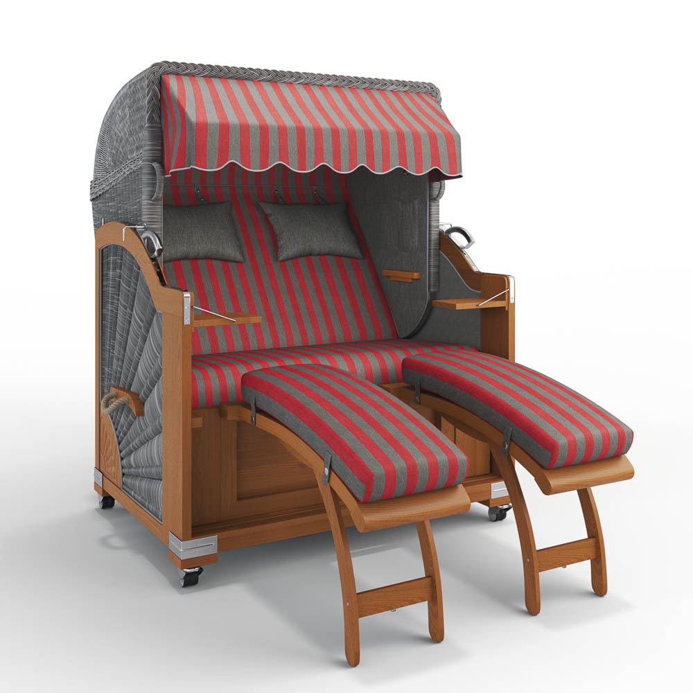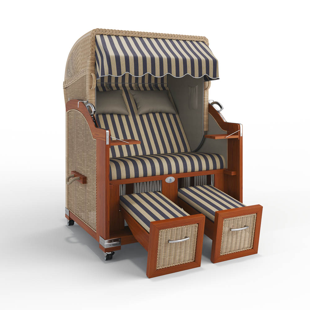 Der Strandkorb Keitum wird in drei exklusiven Holzvarianten angeboten: Mahagoni, Teak und Teak Vintage. Alle Hölzer stammen aus zertifiziertem, nachhaltigem Anbau und stehen für höchste Qualität.