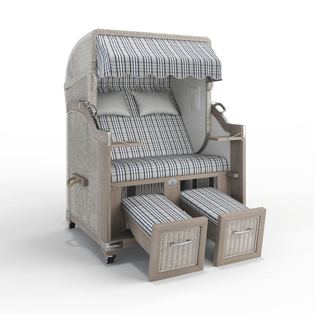 Unser Modell Landhaus Sylt überzeugt mit zwei herausziehbaren Fußablagen, die bei Bedarf schnell und einfach genutzt werden können. Sie lassen sich mit einem Handgriff herausziehen, um entspannt die Beine hochzulegen, und ebenso mühelos wieder einschieben, um Platz zu schaffen. Praktisch und komfortabel!