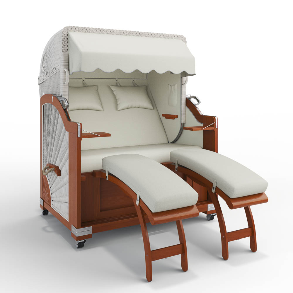 Unser Modell Landhaus Sylt überzeugt mit zwei herausziehbaren Fußablagen, die bei Bedarf schnell und einfach genutzt werden können. Sie lassen sich mit einem Handgriff herausziehen, um entspannt die Beine hochzulegen, und ebenso mühelos wieder einschieben, um Platz zu schaffen. Praktisch und komfortabel!