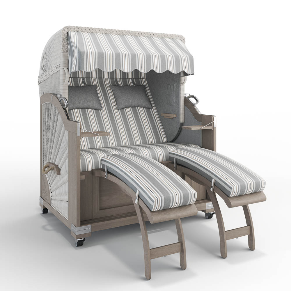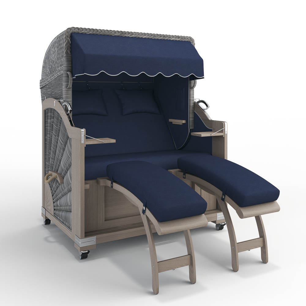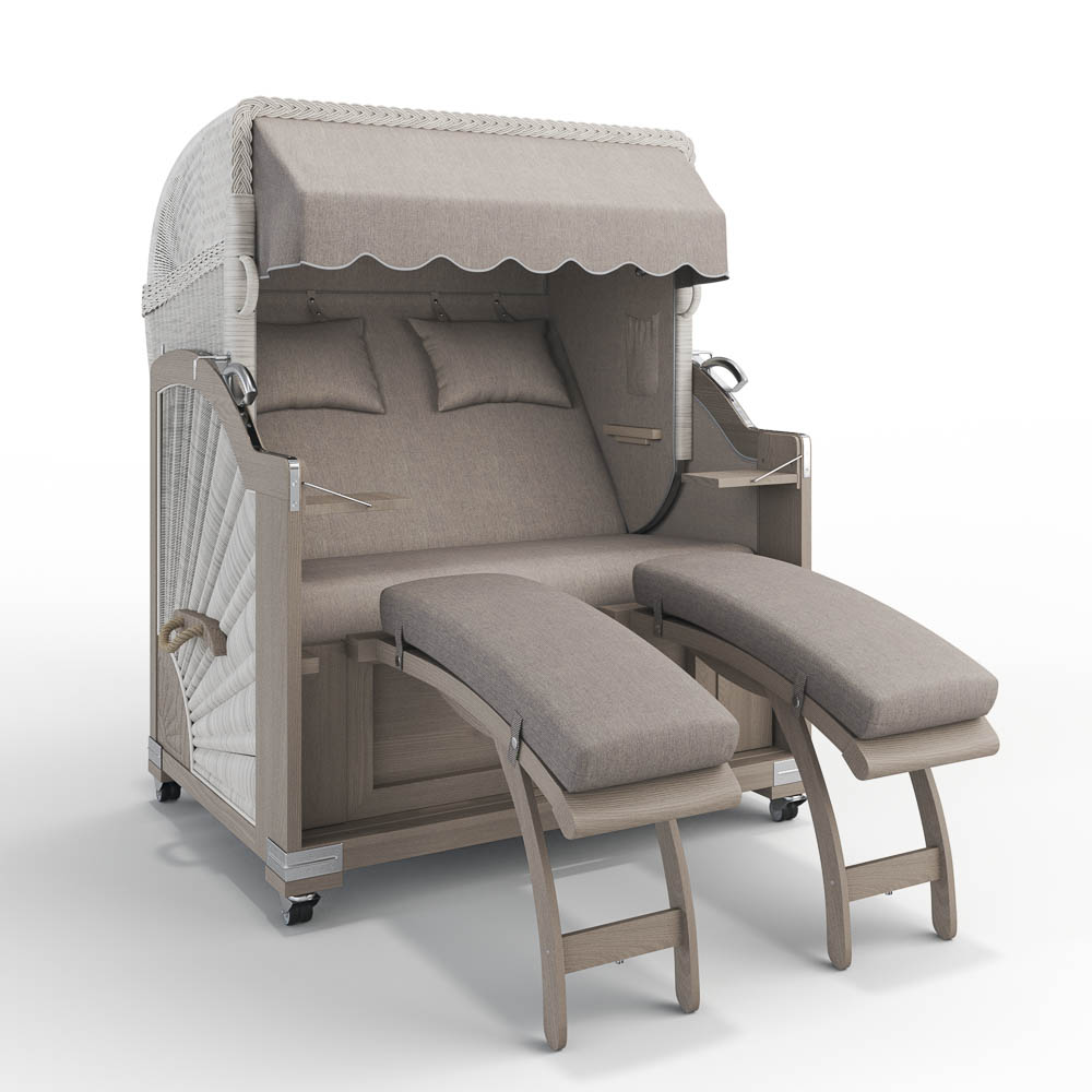 Unser Modell Landhaus Sylt überzeugt mit zwei herausziehbaren Fußablagen, die bei Bedarf schnell und einfach genutzt werden können. Sie lassen sich mit einem Handgriff herausziehen, um entspannt die Beine hochzulegen, und ebenso mühelos wieder einschieben, um Platz zu schaffen. Praktisch und komfortabel!