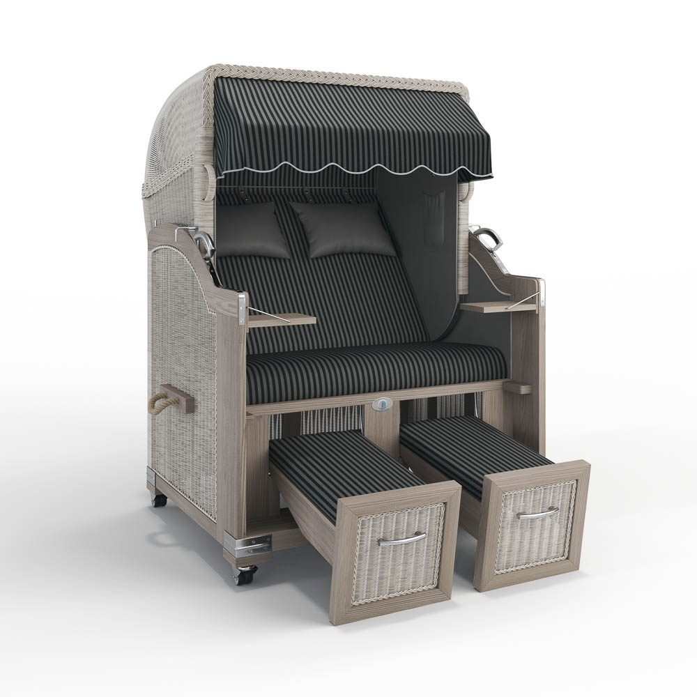 Unser Modell Landhaus Sylt überzeugt mit zwei herausziehbaren Fußablagen, die bei Bedarf schnell und einfach genutzt werden können. Sie lassen sich mit einem Handgriff herausziehen, um entspannt die Beine hochzulegen, und ebenso mühelos wieder einschieben, um Platz zu schaffen. Praktisch und komfortabel!