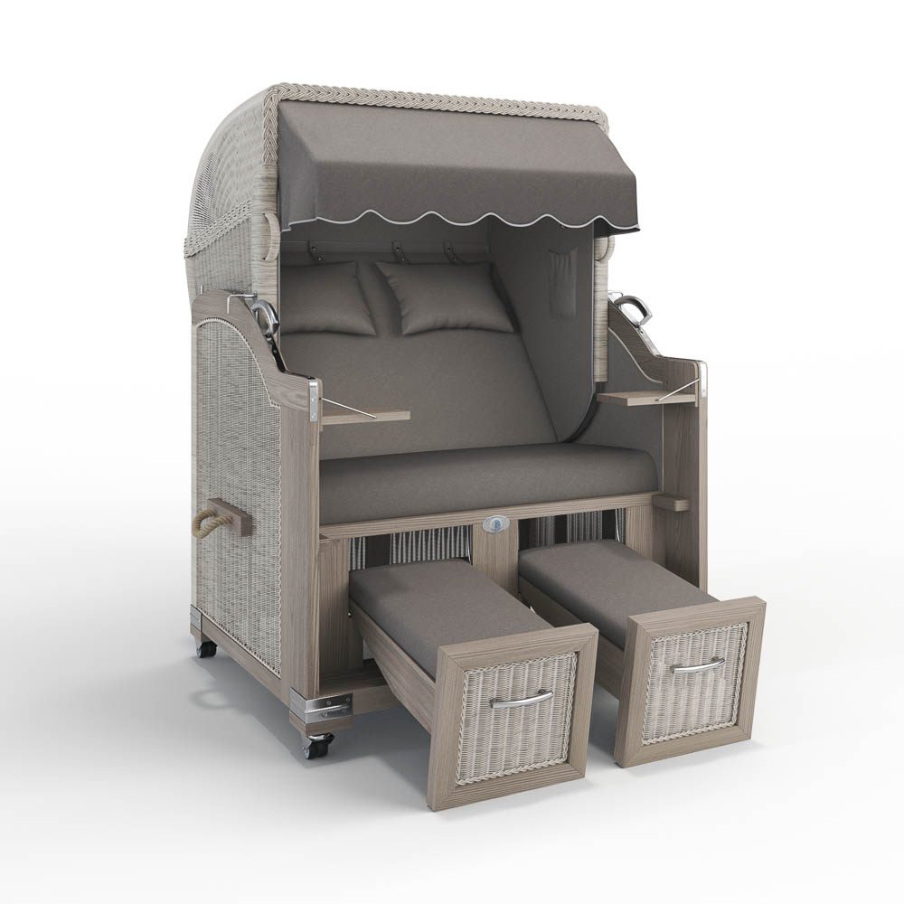 Unser Modell Landhaus Sylt überzeugt mit zwei herausziehbaren Fußablagen, die bei Bedarf schnell und einfach genutzt werden können. Sie lassen sich mit einem Handgriff herausziehen, um entspannt die Beine hochzulegen, und ebenso mühelos wieder einschieben, um Platz zu schaffen. Praktisch und komfortabel!