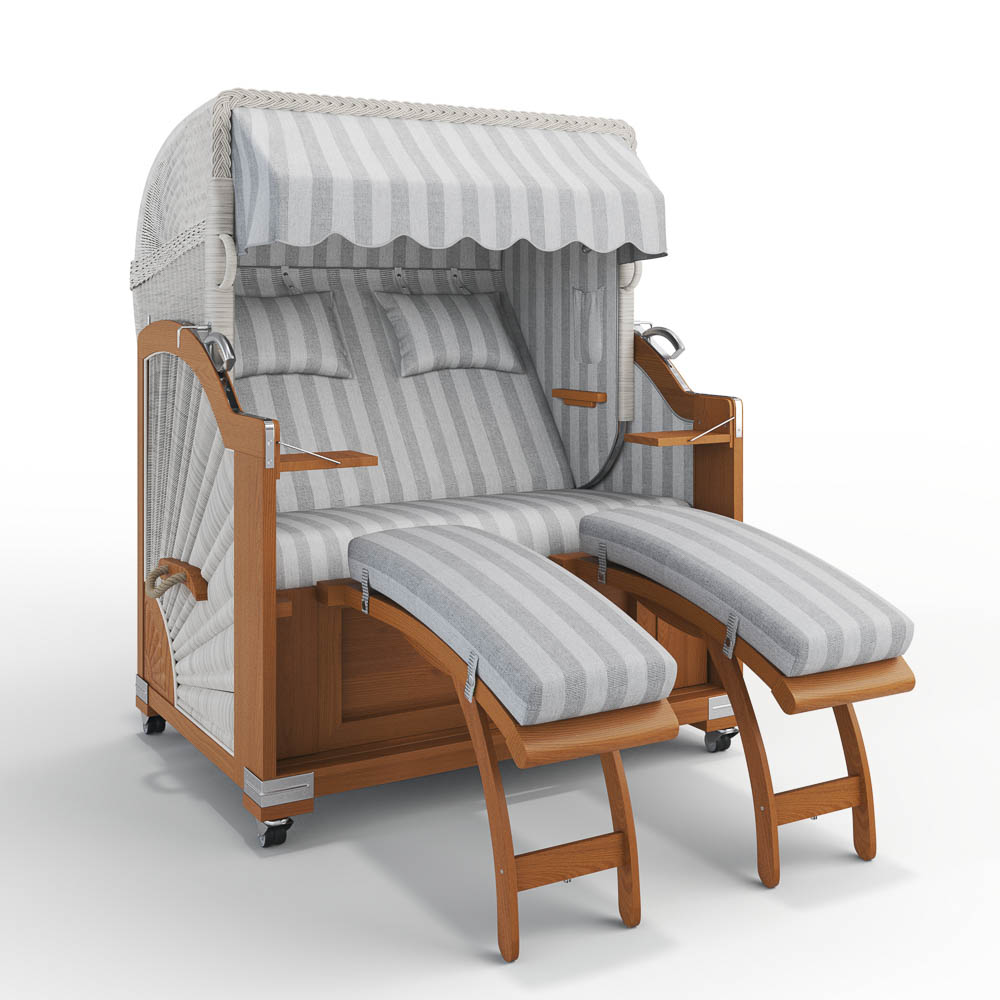 Unser Modell Landhaus Sylt überzeugt mit zwei herausziehbaren Fußablagen, die bei Bedarf schnell und einfach genutzt werden können. Sie lassen sich mit einem Handgriff herausziehen, um entspannt die Beine hochzulegen, und ebenso mühelos wieder einschieben, um Platz zu schaffen. Praktisch und komfortabel!