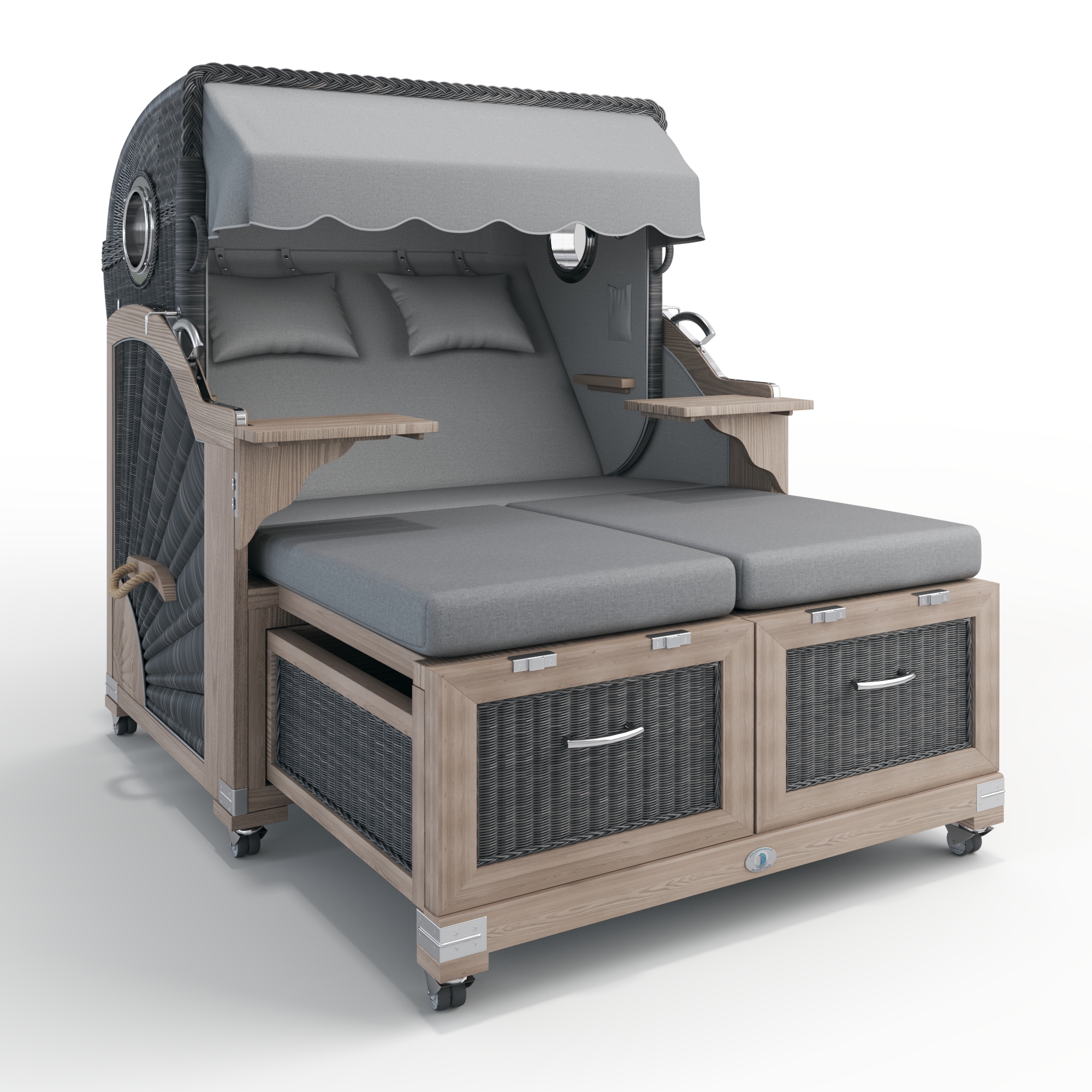 Wir fertigen unsere Strandkörbe in aufwendiger Handarbeit aus massiven Edelhölzern aus zertifiziertem Anbau, hochwertigen Dralon-Stoffen, robustem PE-Geflecht und langlebigen Edelstahlbeschlägen. Jeder Strandkorb wird in unserer Manufaktur in Buxtehude mit größter Präzision hergestellt, um höchste Ansprüche an Verarbeitung, Funktionalität und Stil zu erfüllen.