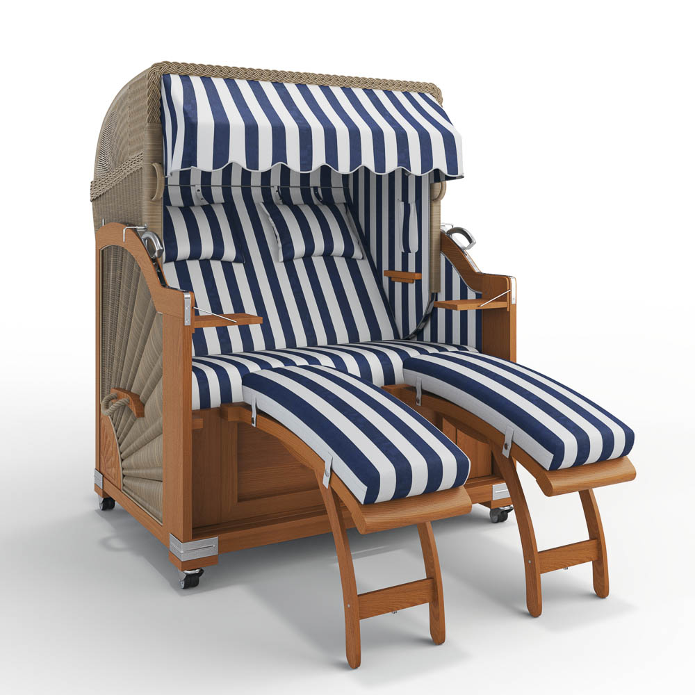 Dies ist nur eine kleine Auswahl an Strandkörben in blau weiss. Sie können bei uns jeden Strandkorb individuell konfigurieren.